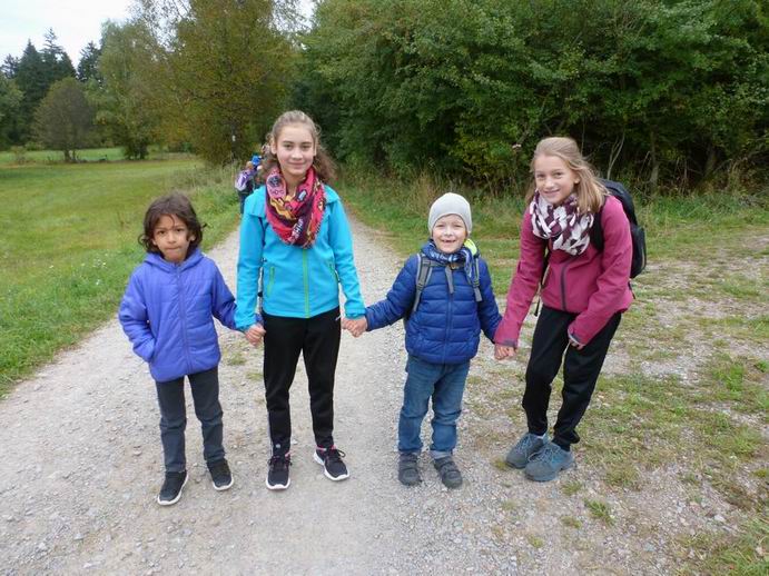 Bilder vom gemeinsamen Wandertag der Klasse 1a, 1b, 2 und 8